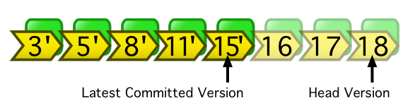 - If there are uncommitted versions, this is indicated by the blue line – all versions below this line are not committed, as also indicated by the version symbols (dots).