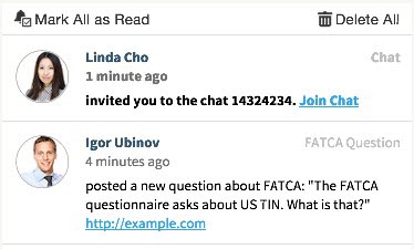 The default implementation deployed by the WorkspaceCollaboration extension is shown below. It sends a notification to the invited user that contains a link to join the chat: