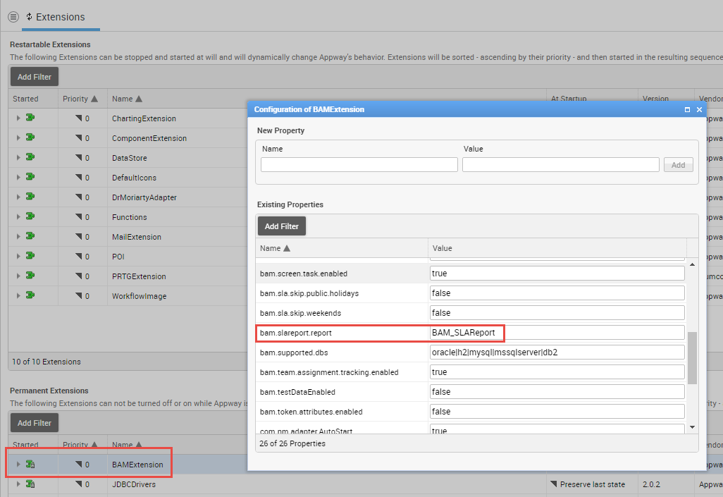 Edit the BAM extension configuration property